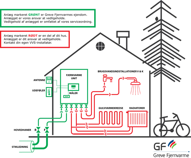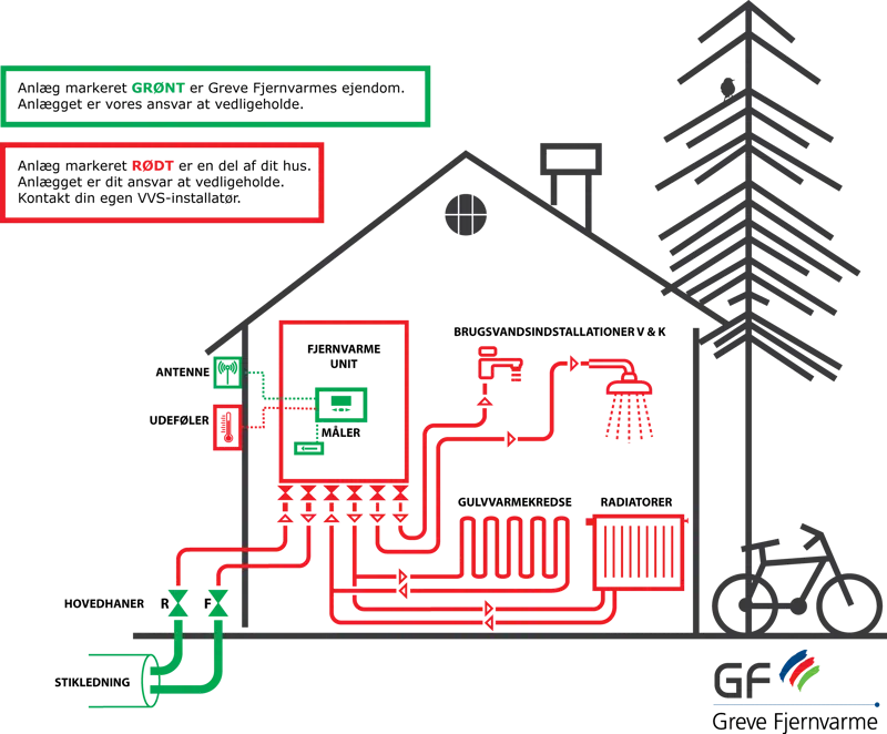 GRØN farve angiver hvad der er Greve Fjernvarme ejendom og ansvar dvs.